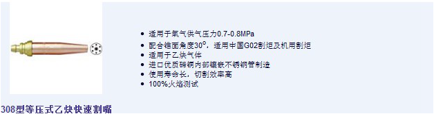 捷锐308型等压式乙炔快速割嘴,308-6,切割厚度:100-150mm,适用于中国G02型割炬及机用割炬