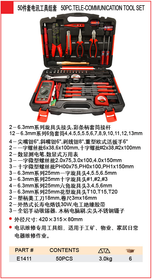 电讯维修专用工具组,适用于工矿、物业、家居日常 电器维修作业;