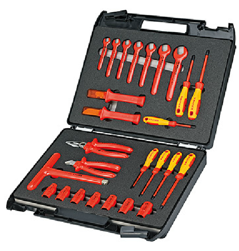 | 产品内容 | ·1件8"绝缘钢丝钳·1件6"绝缘斜嘴钳·7件绝缘开口扳手10,11,12,13,14,17,19mm·4件一字绝缘螺丝批2.5,3.5,4,5.5mm·3件十字绝缘螺丝批PH0,PH1,PH2·1件绝缘T型螺丝批·7件绝缘六角套筒10,11,12,13,14,17,19mm·1件7"绝缘电缆刀·1件6"绝缘剥皮刀 |