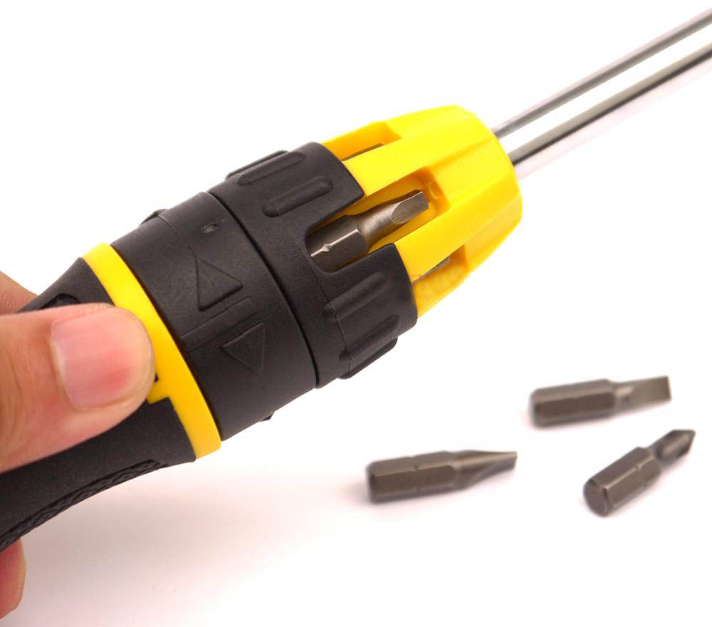 产品内容 ·1件棘轮换头螺丝批 ·10件旋具头:十字PH1,PH2,一字5mm,6.5mm花形T10,T15米字:PZ1,PZ2方头SQ1,SQ2