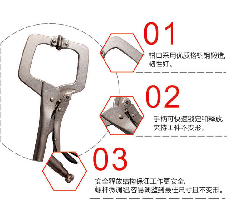钳口采用优质铬钒钢锻造,韧性好