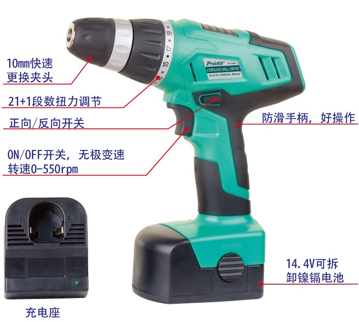 - 14.4V镍镉电池,可钻直径为φ6mm孔径的钢铁,φ8mm水泥墙,φ10mm木头,可广泛应用于家庭安装及电器维修,水电施工等