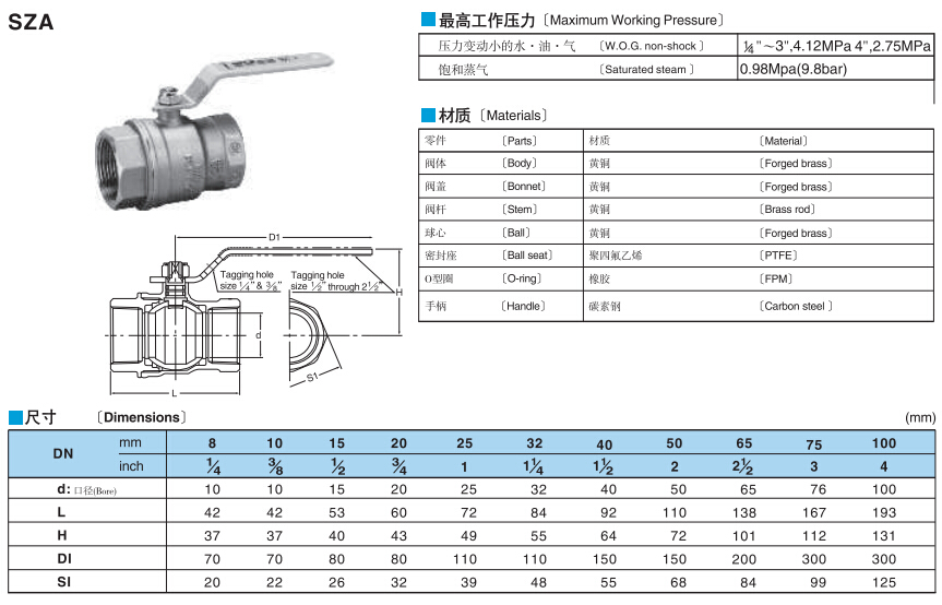 鼠标按住图片可看放大效果开滋/KITZ SZA(DN40) 黄铜球阀